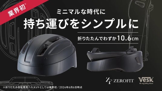 この自転車用折りたたみ式ヘルメットZEROFIT VESK(ゼロフィットベスク)は、グループ会社のヘルメット製造メーカー、東洋物産工業との共同開発。2024年6月12日10時に、応援購入サービス「Makuake」にて販売開始いたします。