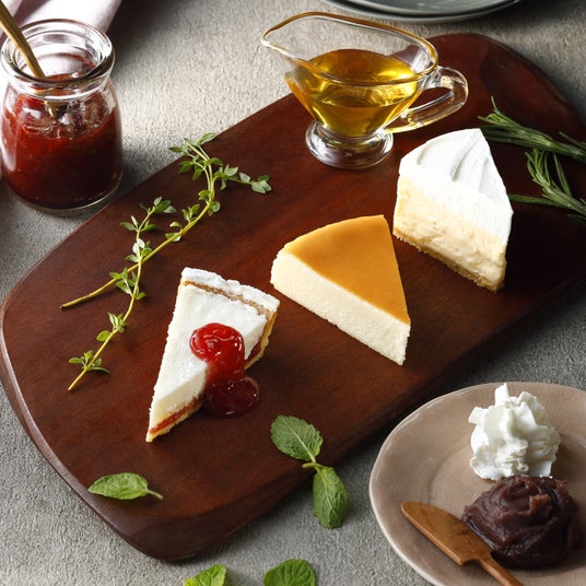 ★タイプの異なるチーズケーキの食べ比べができる『3種のチーズケーキアソート』人気NO.1の『御用邸チーズケーキ』に、レアチーズケーキの『NASU WHITE フロマージュブラン』、3層からなるプレミアムチーズケーキ『しらさぎ』を加えたアソートは、試食感覚で食べ比べができるケーキセット。