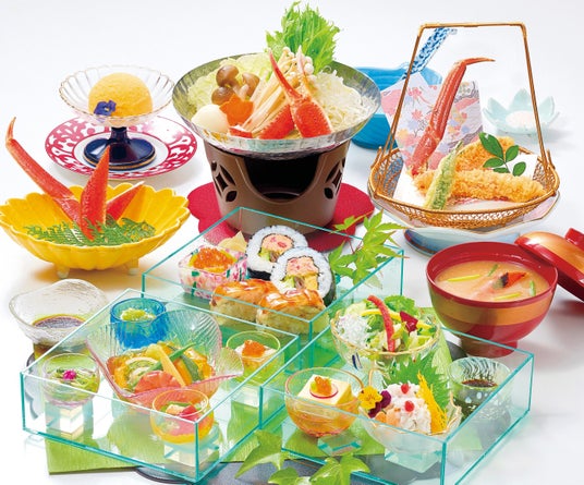 内容:クリスタル三段重・かにすき小鍋・茹でがに・かに天ぷら・お椀・デザート