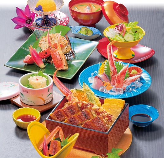 内容:かに鰻重・かに鰻柵・刺身・ずわい焼き・かに湯葉シューマイ・サラダ・香の物・お椀・デザート