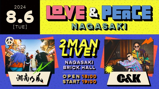 詳細はLOVE&PEACE NAGASAKI 湘南乃風×C&K 2MAN LIVE!オフィシャルWebサイトでもご覧いただけます。