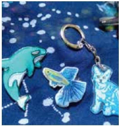 プラバンにお好きな絵を描き、レジンで固めて、自分だけのオリジナルイヤリングやブローチ作り。