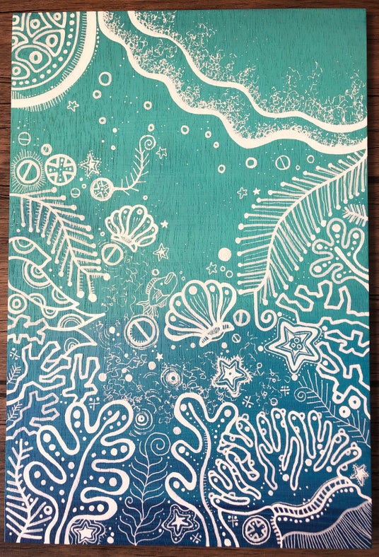 「MAKI樹」原画「海底 ブルーの世界」(縦27×横40cm) 33,000円