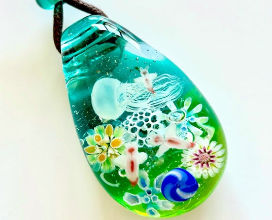 「ガラスとんぼ玉作家 桂知子」ガラスとんぼ玉ペンダント 〈クラゲとクリオネ〉 16,280円