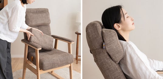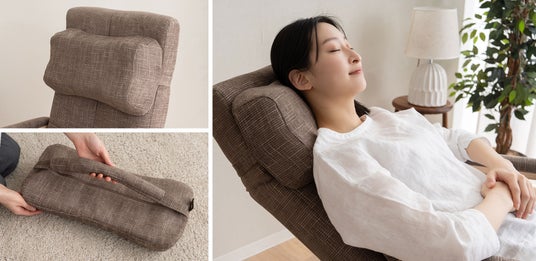お客様のお声から生まれた『あかりシリーズ』。自分の体に合わせてカスタマイズできる2つのクッションで、本当のリラックス体勢を見つけましょう。