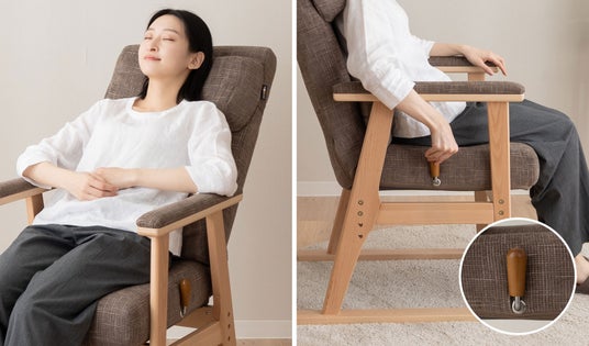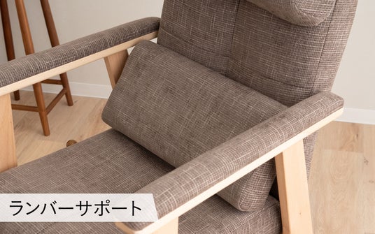 背もたれは、レバー式の無段階リクライニング。読書やお昼寝など、用途に合わせて調節でき、座ったまま操作が可能です。