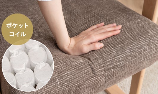 ポケットコイルは耐久性に優れ、ウレタンを使用した一般的な座面より寿命が長く、ヘタりにくいのが特徴です。しっかり支えるのに硬くないから、長時間座る方に特におすすめの座面です。