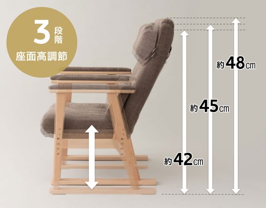 座面高は3段階に調節可能だから、高身長の方にもおすすめ座面の高さは3段階に調節可能。
