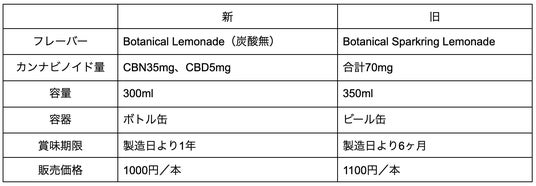 こちらはChilling Highの仕様の新旧比較表です。大好評につき、しばらく品切れ状態でしたが、今回の新ロットから仕様をアップデートしています。フレーバーを改良し、より生のレモンの果実味の強い味へと進化しています。カンナビノイドの量は適切な摂取量に個人差があり、より摂取量を調整しやすくするため含有量を下げました。また、賞味期限を延長しつつ、以前よりもお買い求めやすい価格になっております。