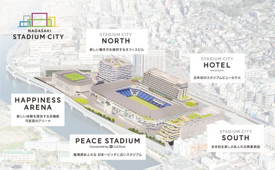 ■長崎スタジアムシティ2024年10月14日に開業予定のサッカースタジアムを中心としたアリーナ・オフィス・商業施設・ホテルなどの大型複合施設です。最新情報は、公式サイトと公式SNSにてお届けしております。