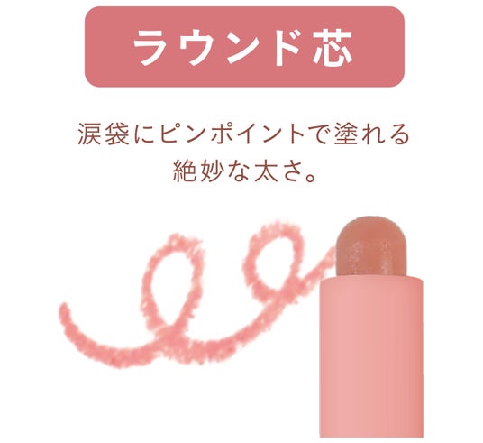 涙袋にピンポイントで塗れる、絶妙な太さのラウンド芯。