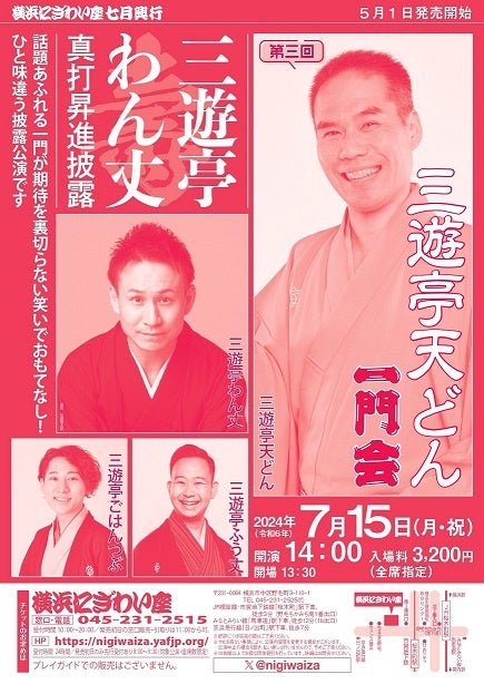 一般社団法人落語協会では、2012年3月の春風亭一之輔、2012年9月の古今亭志ん陽、古今亭文菊以来の抜擢真打が誕生しました。晴れて2024年3月下席より真打に昇進したわん丈を三遊亭天どん一門総出でお祝いします。話題あふれる一門が期待を裏切らない笑いでおもてなし!ひと味違う披露公演です。口上もございます。