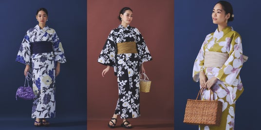この夏は、大人女性が夏休みシーズンのイベントを素敵に・快適に楽しめるよう、「大人の夏休み」というキーワードを軸に、浴衣・水着を展開。ブランドとして初めての展開となる浴衣は、まだ大人女性用には珍しい「セパレート式(二部式)」を採用。着付けの知識や技術が無くても一人で簡単に着られる仕様となっています。100%綿素材を採用し、柄は大人女性の品を演出する3色展開です。