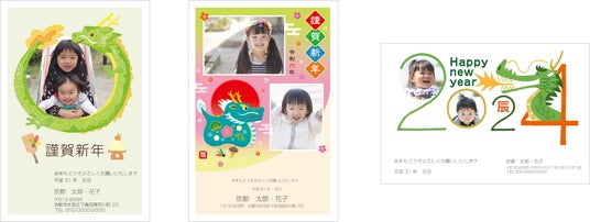 ご家族やお子様の写真が1~3枚程度レイアウトできる、ファミリー向けの年賀状を募集しております。