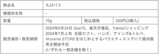 本製品は2024年6月17日よりQoo10、楽天市場店、Yahoo!ショッピングで販売を開始する予定です。店頭では7月上旬より全国のロフトおよびロフトネットストア、ハンズおよびハンズネット、アインズ&トルペ、@cosme STOREにて順次先行販売を開始する予定です。(いずれも一部店舗を除く)