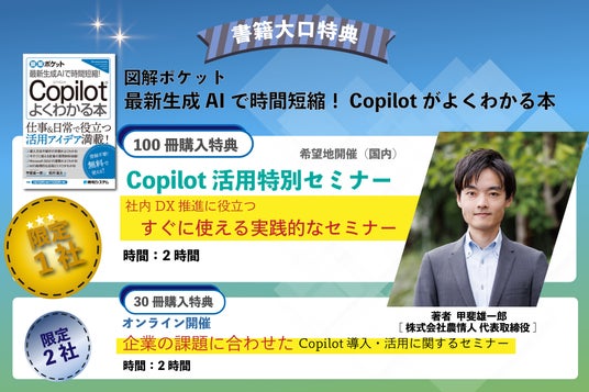 本企画は、書籍『図解ポケット 最新生成AIで時間短縮! Copilotがよくわかる本』の発売を記念し、法人のお客様を対象に特別セミナーを提供するものです。