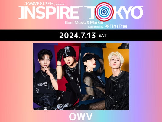 4人組ボーイズグループ・OWVは、昨年7月に開催した「J-WAVE INSPIRE TOKYO 2023 EXTRA」に初出演。2年連続で「J-WAVE INSPIRE TOKYO」のステージに立ちます。今年は「DANCE TO THE MUSIC」をテーマに掲げる初日の出演者として、イベント趣旨でもある「ポップカルチャーを世界へ!」をステージパフォーマンスで体現します。その他初日の出演アーティストは、BOYNEXTDOOR、NOA、そして超特急。今回発表となったOWVも加わり、初日のライブステージを盛り上げます。