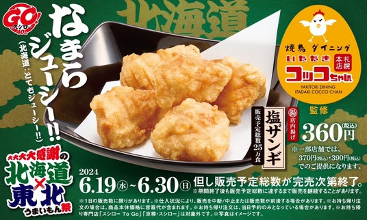 「大大大大感謝の北海道×東北うまいもん祭」にて、北海道本店の「コッコちゃんの塩ザンギ」を「塩ザンギ」の商品名でご提供いたします。