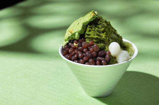 また、ほのかな苦味も味わえる「抹茶」は、抹茶を贅沢に用いたシロップやコンデンスミルク、ふっくらと炊いた北海道産の大納言小豆につぶあん、モチモチとした食感の白玉を添えました。ふんわりかけた抹茶のエスプーマが、さらに抹茶味を感じさせる“和風”のかき氷です。
