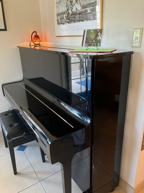店内のアップライトピアノ