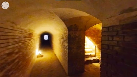動画内では、生い茂る木々やその中に現われる人工的な建造物など非現実的な風景が次々と展開。薄暗い弾薬支庫や細い通路でも自由に視点を動かすことができる360°VR動画なら、まるで実際にその場所を探検しているかのようなワクワク感を味わうことができます。