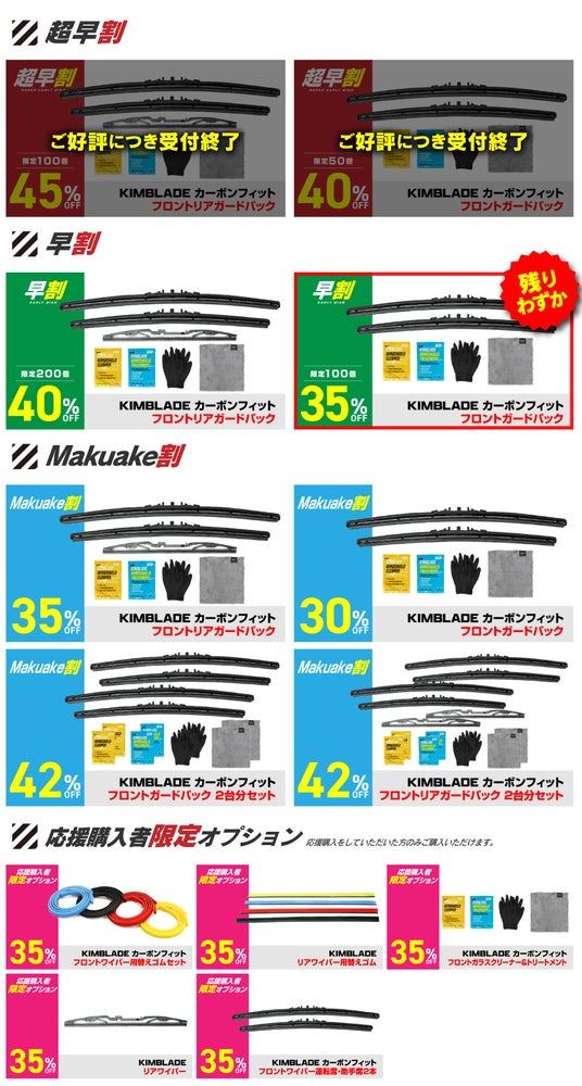 海外でも話題を集めたKIMBLADE カーボンフィットワイパー、Makuakeクラウドファンディング 終了まで残り10日。