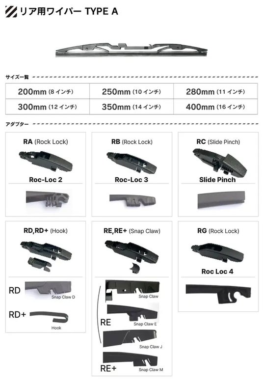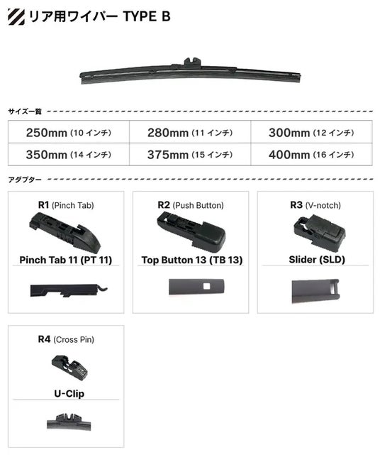 お車のワイパーの長さやアームの形状が分からない場合でも、車両情報をお伝えいただければ、適切な形状をご案内いたします。