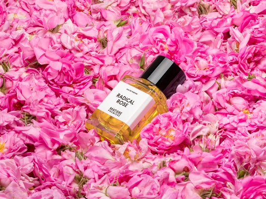マティエール プレミエール社によって有機栽培されたバラから抽出されたローズ アブソリュートを高配合。ジャマイカ産サフランとチリペッパーベリーオイルで、ローズの明るくスパイシーな面を、インドネシア産パチョリで、ダークでウッディな面を強調しています。