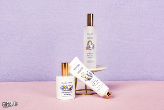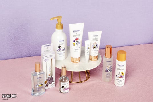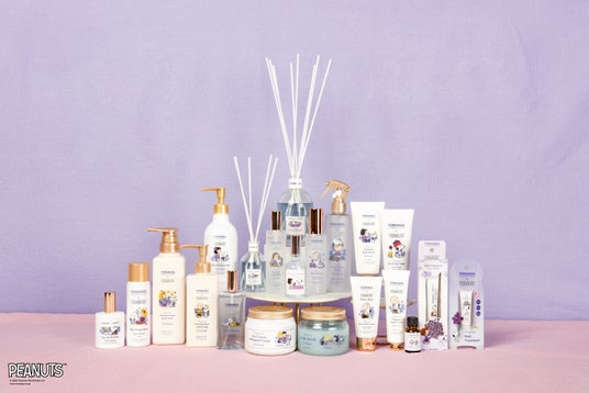 本コレクションのパッケージは、紫の花が印象的な「マリアリゲル」のカラーを基調としながら、この香りが持つやさしさや上品さと、世界中で愛されるスヌーピー&フレンズが醸し出す愛おしい空気感をかわいらしく表現しました。