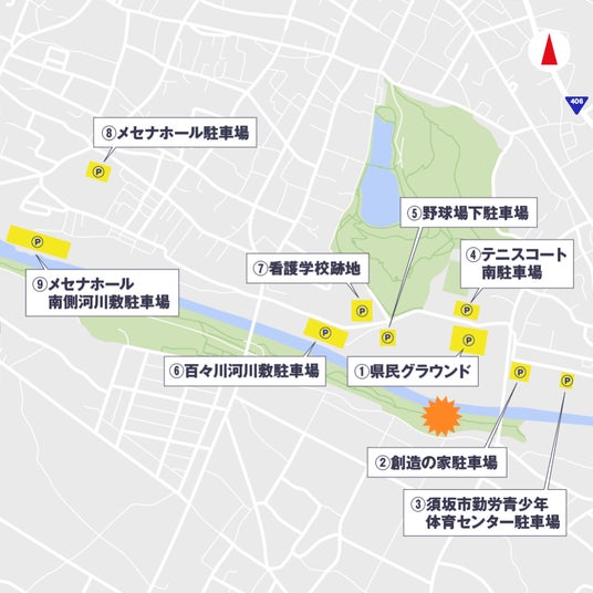 駐車場へは、特設サイトに記載された指定ルートでご来場ください。