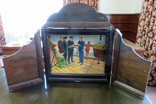 「事業の根本は人に在り。」との方針から、グンゼは創業間もない明治30年から専任教師による学校制度を開始しました。展示品は、独身寮の備品類で、寮生はここから学校に通いました。学校制度は、平成12年まで続きました。