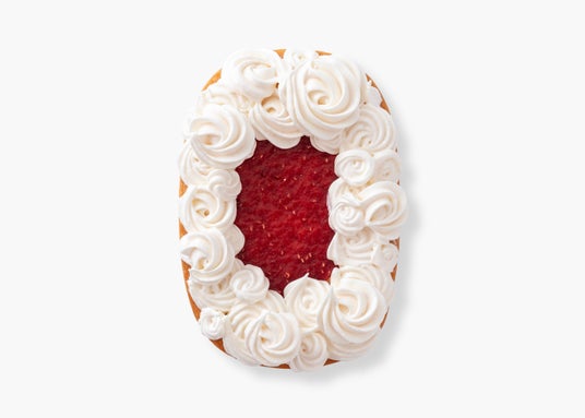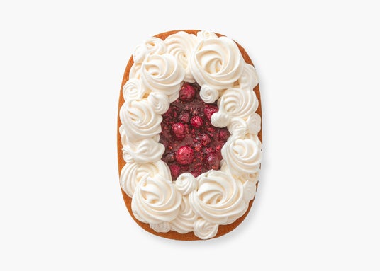 フリーズドライフランボワーズをトッピングし、フリル状に絞ったメレンゲが美しい女王製菓のシグネチャー「ヴィクトリア ロワイヤル」