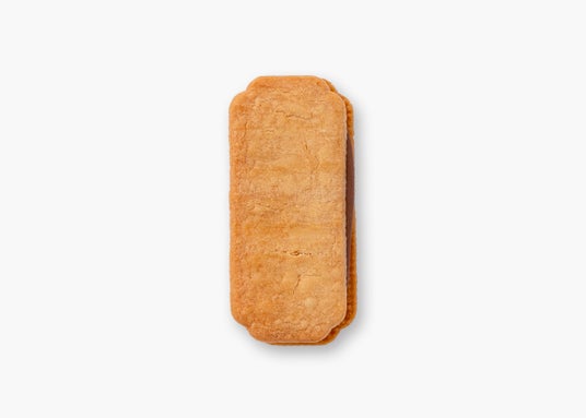 薄く仕上げたカリカリ食感のトフィーと、ほろ苦いスイートチョコレートを、バターの濃いミルフィーユサブレでサンド「ショコラ」¥319(税込)