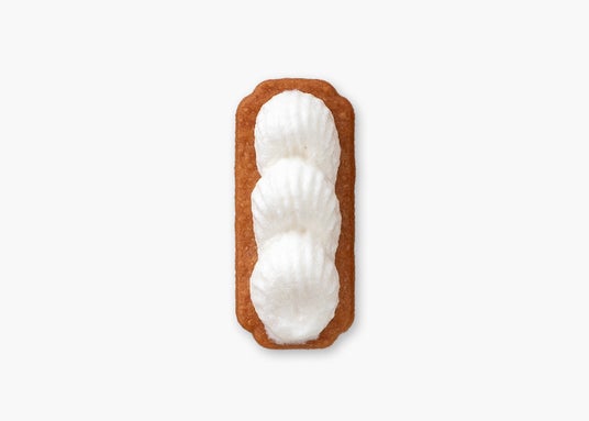 ミルフィーユサブレの上にサクサク食感のバニラメレンゲをのせて焼き上げました。メレンゲがシュワシュワとお口の中で溶ける感覚を。「メレンゲ」¥187(税込)