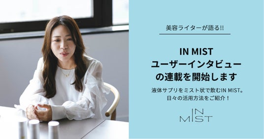 次世代ミストサプリメント「IN MIST」は、既に使ってくださっているお客さまに「飲みやすい」「美味しい」と大変好評をいただいています。一方、あまりに新しすぎる体験がゆえに、写真や言葉だけでは新たに興味をお持ちくださったお客さまがIN MISTの良さを分かりづらい、という課題がありました。もっと多くの方に簡潔にIN MISTの良さをお伝えできるようにさまざまな方法を模索しておりますが、このたび美容・健康にこだわりを持つ方々を中心としたユーザーインタビューの連載を開始することとなりました。