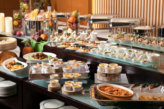 ブッフェ料理、フリードリンク、室料2時間、音響照明基本料、サービス料、消費税