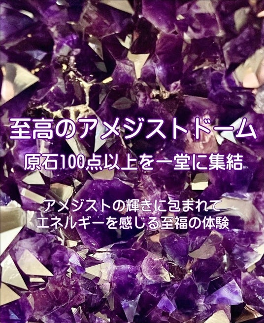 会場では、世界中から厳選されたミュージアムクラスのアメジストドームをはじめ、100点以上のアメジストが展示されます。原石も含まれ、その美しさだけでなく、地球のエネルギーと結びついた神秘的な力を体感できるでしょう。