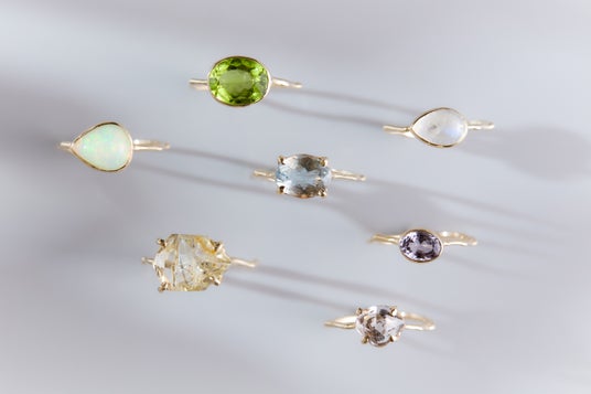 シルバー素材の大振りなファッションジュエリーやK10、K18の華奢なコレクション、天然石を使った1点モノやブライダルラインなど幅広く展開