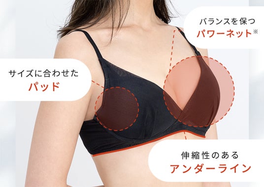 アンダーラインに伸縮性があることで、しっかりフィット!バランスよく配置したパワーネットとの組み合わせにより、締めつけず程よいホールド力を実現。