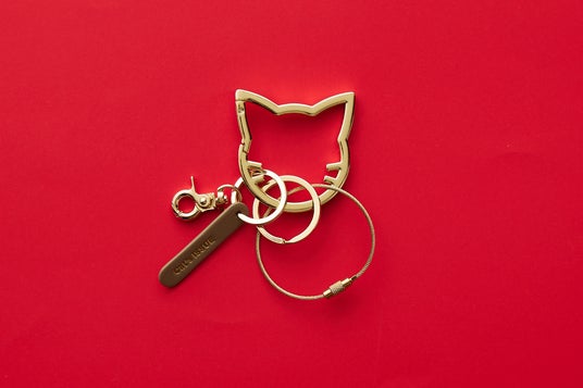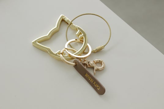 オリジナルのネコ型カラビナをポイントに、ゴールド×ベージュの大人っぽいイメージにデザインしたアイテム。ベージュカラーの合皮タグには、Cat’s ISSUE(キャッツイシュー)のロゴを刻印しました。