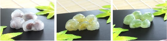 定番の「北海道こしあん」をはじめ、「瀬戸内甘夏みかん」「シャインマスカット」と夏らしいフレーバーをご用意しております。見た目も食感も楽しめる、夏のひんやりスイーツをぜひお召し上がりください。