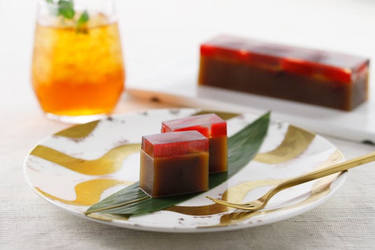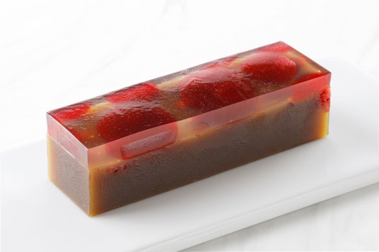 風味豊かな白餡とアール・グレイの羊羹、苺とラズベリーのパート・ド・フリュイにベルガモットの酸味が引き立つ錦玉羹の2層で構成しています。