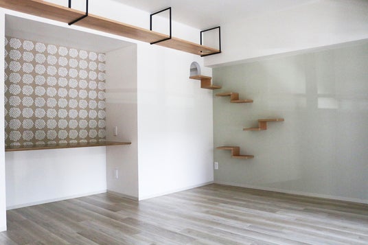 このような状況下、かねてよりリフォームや買い取り再販といった住宅ストック事業のノウハウを培ってきた宝グループと、インテリアとエクステリアを融合した「ウチ」と「ソト」が調和した空間提案に注力しているサンゲツグループが、各グループの強みをいかし、築32年の旧社宅を賃貸住宅「茶屋ヶ坂プログレス」としてフルリノベーションしました。築浅のマンションに比べ広い間取りに、トレンドのデザインやペット共生といった付加価値をかけ合わせ、新たな息吹を吹き込みました。