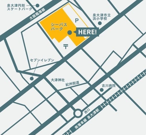 2023年6月、泉大津市民会館等跡地に誕生した、甲子園約1個分(約3.5ha)の緑豊かな公園。芝生やせせらぎなどがあり自由に遊べる。
