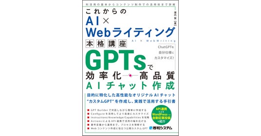 株式会社秀和システム(東京都・代表取締役会長兼社長 上田智一)は、2024年7月5日、新刊『これからのAI×Webライティング本格講座 GPTsで効率化・高品質AIチャット作成』を発刊します。