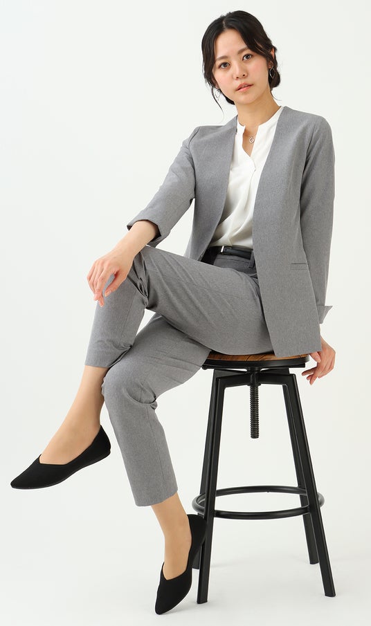 2024年3月にデビューした、上下で税込1万円を下回る価格の「ゼロプレッシャースーツ」レディススタイルは、発売直後からリピート買いしていただくなど、新色追加を待つお声があがるほど、大変ご好評いただいています。今回新たに登場したネイビーとライトグレーもビジネスシーンで使いやすいカラーとなっていますので、外回りや汗による汚れが気になる方、自転車通勤の方、仕事帰りにお子様のお迎えがあるワーキングママなど多くの方に手に取っていただきたいです。