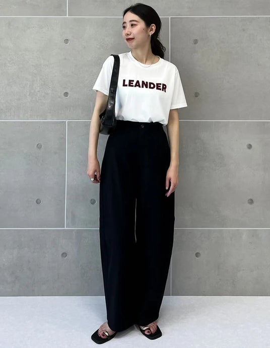Tシャツ&カーブパンツは、身体の骨感をさりげなくカバーしてくれるのでシンプルだけどお洒落にみせてくれる優秀な組み合わせ。
