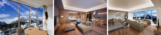 各室には心躍る談笑や穏やかな休息を実現する、開放感あふれるリビングルームや、気心知れた仲間とワインや食事をお愉しみいただける、機能的で美しいオープンカウンターのキッチンをご用意しています。北アルプスの絶景に包まれながら大切な人と過ごす、ゆとりある空間をご提供します。