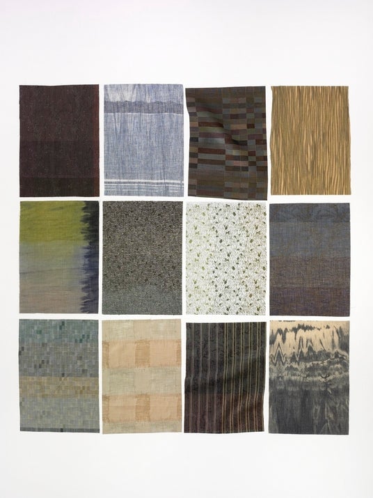 そしてさらに微妙な色合い、光の陰影を求めて、2度刺し、3度刺しと幾重にも刺しゅうを重ねることによって、飾らない何気なさと手のかかった温もりの中に、華やかな自然の素朴さを求め続けています。