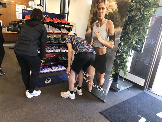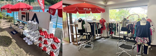 試履きシューズ&FILA×KPIコラボウェア展示の様子